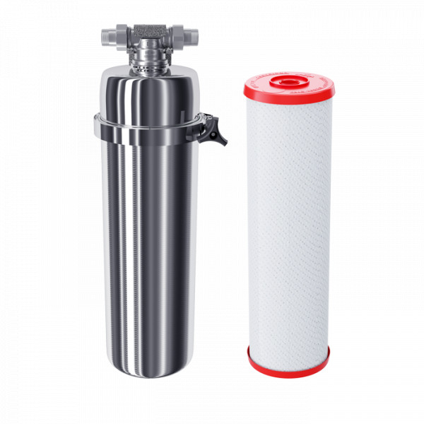 Не забывайте учитывать и срок службы фильтра: он указан в паспорте и определяет, когда модуль нужно заменить, даже если ресурс активной фильтрации в литрах еще есть.50000СорбцияСпособность “впитывать” из воды растворенные, “невидимые” вредные примеси, по принципу губки. Активированный уголь - основной сорбционный материал, который используется в картриджах фильтров для питьевой воды. Например, именно так из воды удаляется хлор.даСкорость фильтрации, л/минСкорость подачи отфильтрованной воды из крана чистой воды на мойке. Например, при скорости фильтрации 2,5 литра/минуту стакан 200 мл. наполнится меньше, чем за 10 секунд.25,0КомплектацияГотовый фильтр состоит из корпуса и картриджа для очистки воды. Если вы приобретаете только корпус, необходимо отдельно купить подходящий к нему картридж: это может быть картридж для механической очистки воды от ржавчины, картридж для глубокой очистки воды от хлора.готовый фильтрВодаКартриджи и корпуса фильтров рассчитаны на определенную температуру воды. Данные технические характеристики важно учитывать, поскольку от этого зависит качество очистки и срок службы фильтра.горячаяМатериал корпусаПищевой пластик: Допущен к контакту с пищевыми продуктами. Нержавеющая сталь: Долговечный и безопасный корпус из нержавеющей пищевой стали.нержавеющая стальОчисткаМеханическая очистка: Задерживает ржавчину, ил, песок, как “сито”. В корпусе предфильтра с механической очисткой установлен полипропиленовый модуль. Глубокая очистка: Подходит, чтобы купать детей в чистой воде. Делает прием душа и умывание более приятным. Фильтр глубокой очистки воды во всей квартире не только останавливает ржавчину, ил, песок, но и впитывает растворенные опасные примеси, как губка. Удаляет из воды хлор, хлорорганические вещества, пестициды и другие загрязнители.глубокаяДля горячей водыКартриджи и корпуса фильтров рассчитаны на определенную температуру воды. Данные технические характеристики важно учитывать, поскольку от этого зависит качество очистки и срок службы фильтра.да