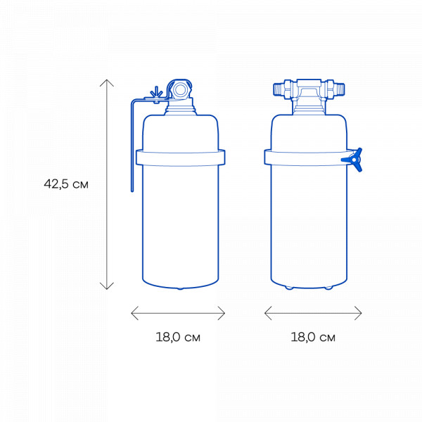 Высота, смОбратите внимание на габариты фильтра и измерьте, сколько свободного пространства в предполагаемом месте установки.42,5Ширина, смОбратите внимание на габариты фильтра, и измерьте, сколько свободного пространства в предполагаемом месте установки.18,0Глубина, смОбратите внимание на габариты фильтра, и измерьте, сколько свободного пространства в предполагаемом месте установки.18,0Материал корпусаПищевой пластик: Допущен к контакту с пищевыми продуктами. Нержавеющая сталь: Долговечный и безопасный корпус из нержавеющей пищевой стали.нержавеющая стальДля горячей водыКартриджи и корпуса фильтров рассчитаны на определенную температуру воды. Данные технические характеристики важно учитывать, поскольку от этого зависит качество очистки и срок службы фильтра.да